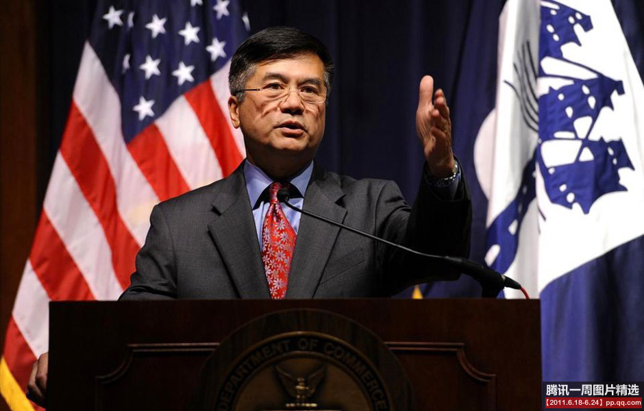 当地时间2011年6月22日,美国华盛顿,骆家辉以美国商务部长的身份发表最后一次演说。据悉,骆家辉已经获得美国总统奥巴马提名出任美国驻华大使,目前正在抓紧时间学习中文。