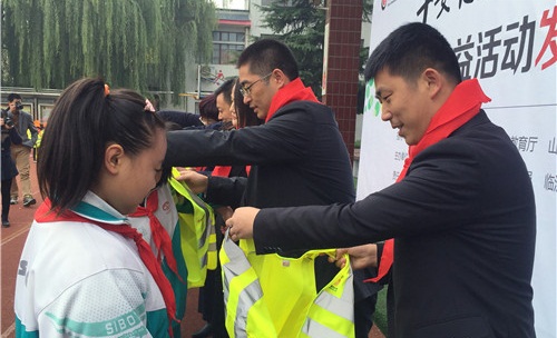 2014年4月22日,临沂首批荧光衣发放仪式在临沂朴园小学举行。