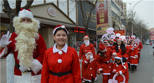 12月19日,一名穿着圣诞服装,头戴圣诞帽子,有着长长的白胡须的外国人来到临沂新华路与红旗路交叉口的世纪缘珠宝店,引来众人驻足观望,这是在做什么呢,记者随后进行了调查。原来是圣诞老人准备带领市民进行跨年长跑,领头长跑的是世纪缘斥巨资请来的正宗圣诞老人。据了解,在国外,很多国家都会举行圣诞跨年长跑活动,但在临沂还是第一次。