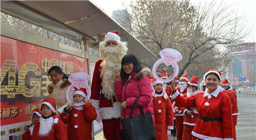 “Merry Christmas”圣诞老人和市民热情打招乎