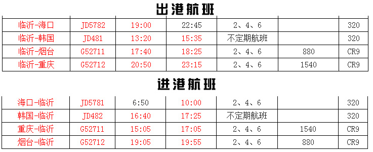 临沂机场5日起执行最新航班时刻表 调整部分航班