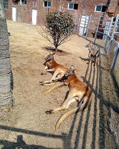 世界上最大的袋鼠——赤大袋鼠来啦!上周末临沂动植物园袋鼠馆成了游客关注的焦点,原来是园方新引进了4只赤大袋鼠,这种袋鼠比动物园原有的赤颈袋鼠体型更大,跳得更远,一时成了动物园内的新宠。