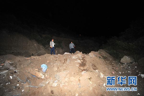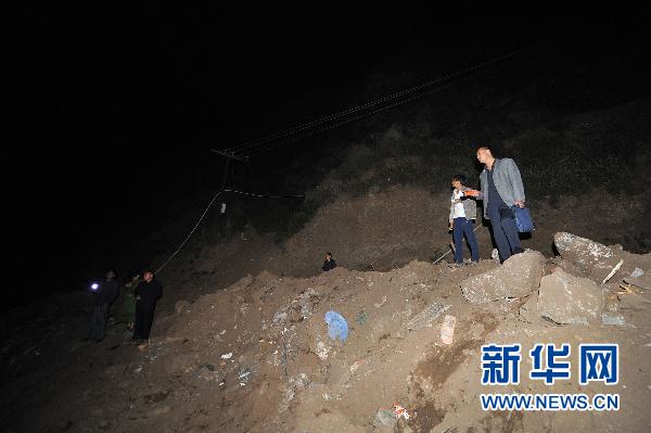 6月27日,救援人员在位于山西代县的铁矿事故现场观察情况。记者26日在山西代县了解到,位于代县新高乡白峪里沟的一铁矿26日上午发生一起山体垮塌事故,造成该矿生活区被埋,目前已知有人员伤亡,详细情况正在调查了解中。新华社记者詹彦摄