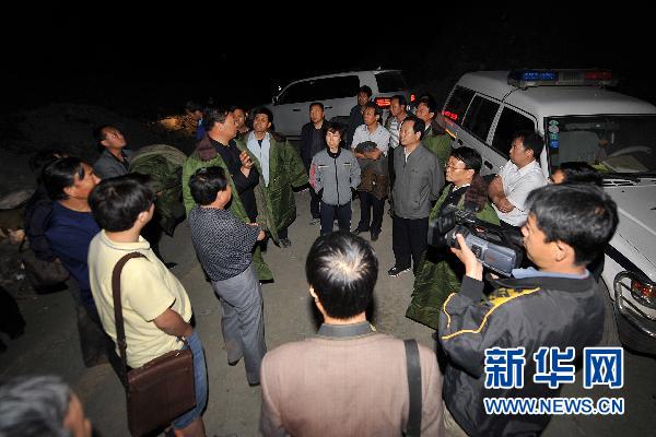 6月27日,救援人员在位于山西代县的铁矿事故现场商量救援方案。新华社记者詹彦摄