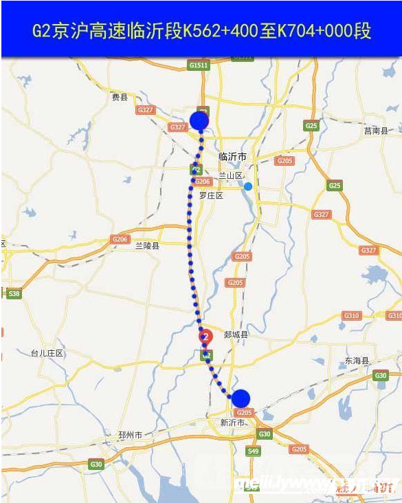 京沪高速临沂段维修工程重点有六段,分别是上海方向:K626+400~K638+000、K693+000~K701+300、K682+000~K690+000;北京方向(左幅):K671+000~K674+000、K689+000~K693+000、K697+000~K704+000,需病害处理后罩面。施工期间,通行此路段,需根据施工标志牌减速慢行。