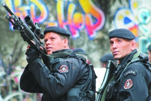 今年6月,巴西政府出动800名警察和特种部队士兵,驾驶着直升机和装甲车,直奔里约热内卢市内的曼盖拉贫民窟,打击当地气焰嚣张的贩毒和暴力团伙。