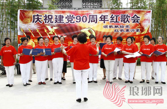 6月25日上午,位于罗庄区的万通盛世馨园小区的小广场上人头攒动,一首首经典红歌激越嘹亮,响彻楼宇。看到观众们如痴如醉的神情,该小区物业管理负责人王跃民感慨地说:“这种健康向上的精神食粮提神聚气,小区居民非常喜欢。”