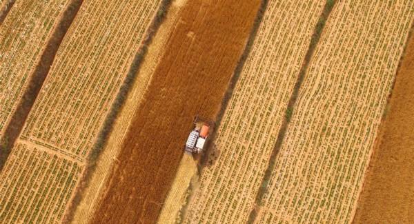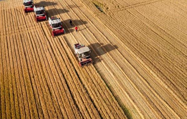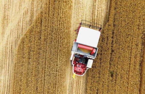 6月2日,人们驾驶收割机在山东省济宁市嘉祥县纸坊镇梁山村收割小麦。近日,山东各地小麦陆续进入收获期,田间麦香四溢,遍地金黄