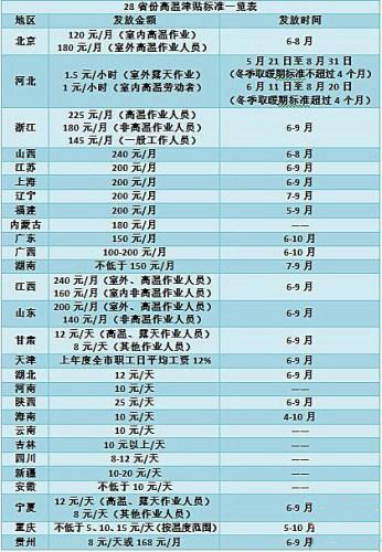 记者不完全统计,目前全国已经有28个省份明确了本地区的高温津贴发放标准。而其中山东、陕西等地都是在去年上调了津贴标准。