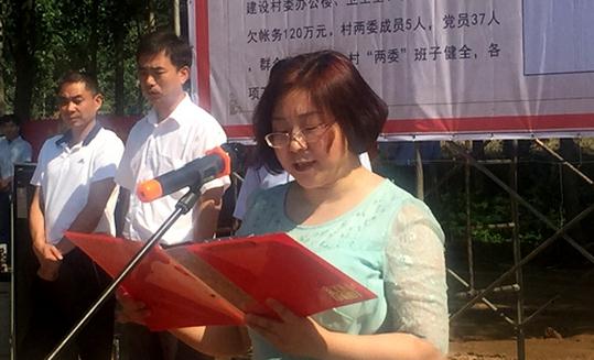 “第一书记”杨勇在村文化广场向领导汇报近期工作成果