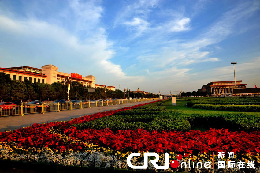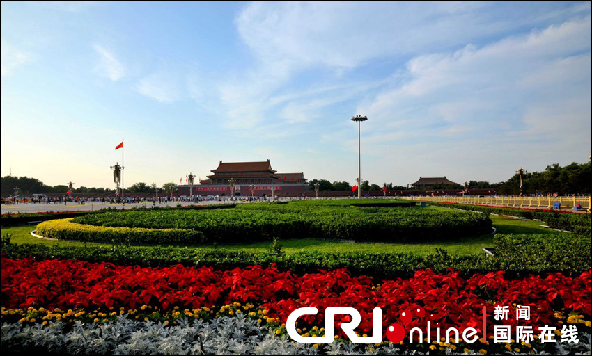 2011年6月26日,北京,在天安门广场大型花坛,呈现一派美景。