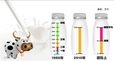 以前的25年里,奶农从没有因为标准问题倒奶、杀牛。目前出现这种现象是因为三聚氰胺事件