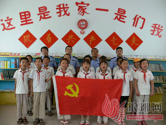 6月27日,沂南县公安局马牧池派出所民警组织辖区留守儿童来到派出所“留守儿童之家”,开展了以“党旗照耀成才路”为主题的革命传统教育,民警给留守儿童讲解党的历史和光辉历程,并与他们一起合唱了红色歌曲《跟着共产党走》。