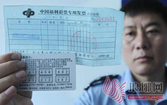 27日上午,记者来到兰山公安分局西郊派出所,见到这个会员卡和发票上都盖着“北京福彩3D中心监制”的印章。六期中奖号码的下方留有咨询热线和监督电话,区号全部是“010”,在卡的下方,还特别提示:内部提供,真实有效,中奖率100%!会员统一售价3880元。