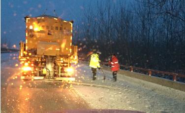 养护应急救援中心召开除雪防滑工作动员会,进行安排部署,提前进行融雪剂装车作业。严格按照除雪防滑专项应急预案要求,实行包路段责任制,对重点路段实行蹲点管理,形成各负其责,全面应对的工作机制。各养护分中心停止休班,提前集结应急队伍和外协单位,融雪剂、防滑料装车待命。同时,加强道路巡查工作,特别对陡坡、桥梁等路段进行重点巡查。根据天气情况及责任路段划分,果断采取抛洒融雪剂、机械除雪等措施,及时清除道路积雪。