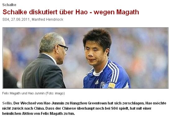 新浪体育讯 北京时间6月23日,德国《图片报》突然曝料,现效力于德甲沙尔克04俱乐部的中国球员蒿俊闵确定离队,他的新东家将是一支中超球队,不是天津泰达,也不是山东鲁能,而是今年的另一支亚冠队伍——杭州绿城。