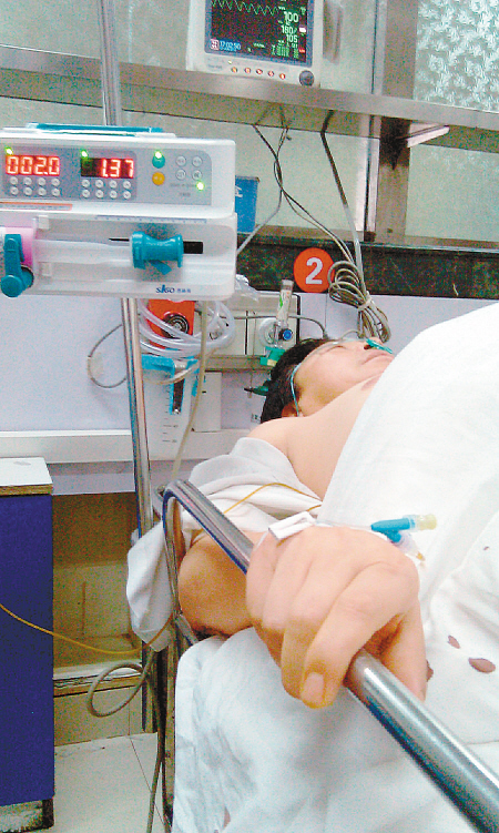 贺继坤躺在西京医院急救室内。