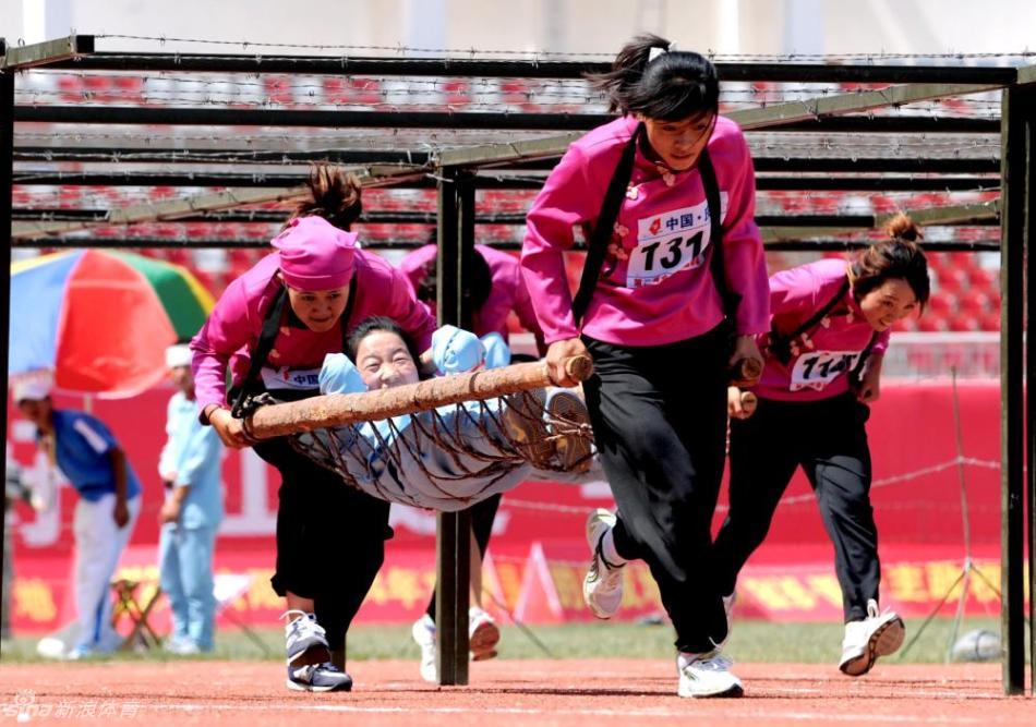 女队员奋力前行