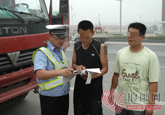 民警在检查驾驶员证件。