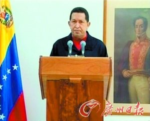 6月30日晚,委内瑞拉总统查韦斯通过委内瑞拉国家电视台发表讲话。