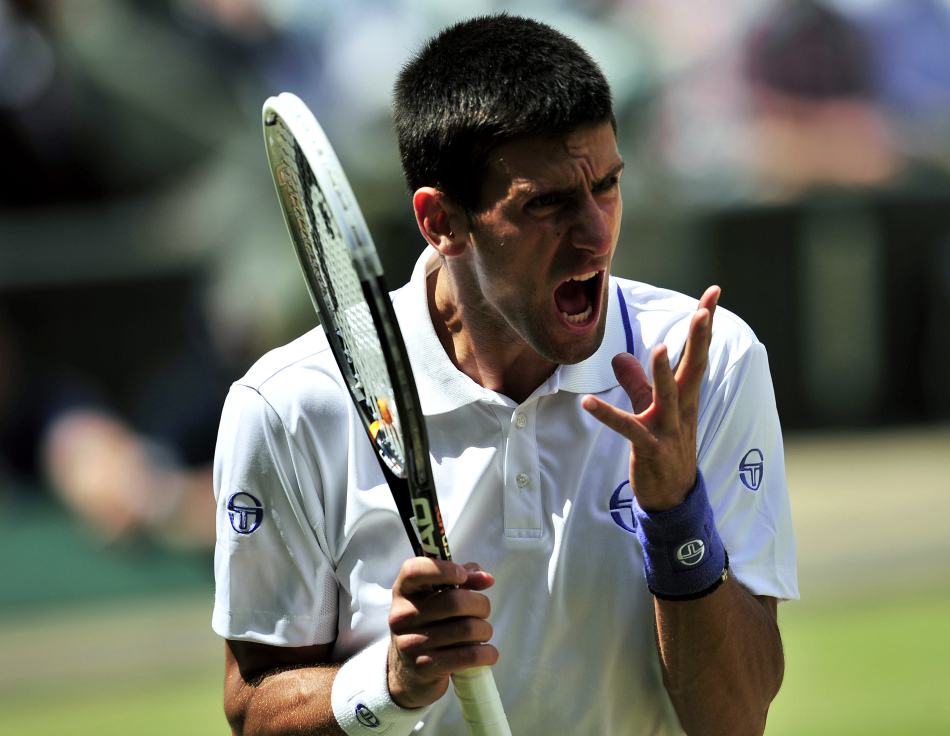 新浪体育讯 北京时间7月1日(伦敦当地时间7月1日)消息,2011年温布尔登网球公开赛展开了男单半决赛的争夺。在首场比赛中,赛会第二种子德约科维奇迎战此前淘汰了费德勒的法国名将特松加,虽然在第三盘错失了两个赛末点,但塞尔维亚人还是以7-6(4)/6-2/6-7(9)/6-3成功过关,首次打进温网决赛。同时在下周公布的世界排名中,德约科维奇也将超越纳达尔成为新的世界第一。