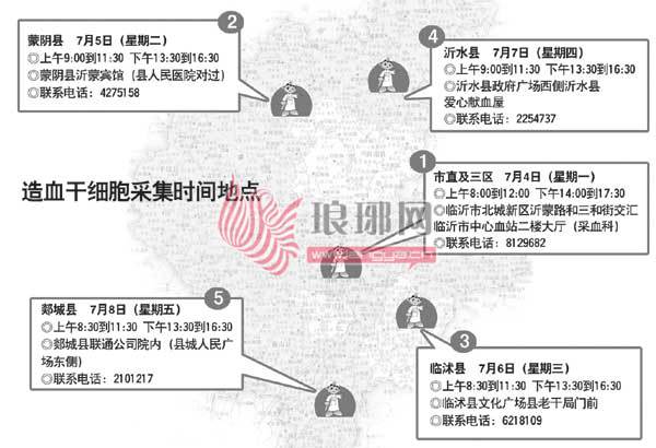 临沂造血干细胞采集时间地点示意图。