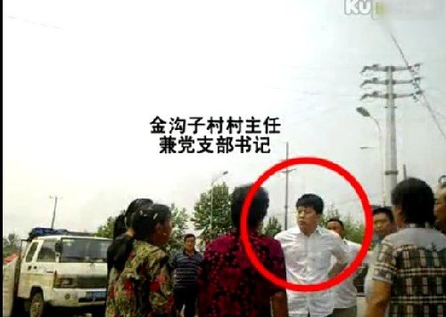 张秀芳老人说当初立这两块“贪官碑”他们也是吃了不少苦头。就在6月19号,一家六口人在村里立碑庆祝的时候,他们金沟子村的村主任也赶到了现场,对张秀芳老两口大打出手,正巧路人用手机拍下了这一场景。张秀芳说,村主任拉着一车人,过来打他们,把他们打倒,他不闻不问他就打,把她打倒,她就躺在那里,她眼前一阵黑倒下了。当记者为村主任为什么打张秀芳时,她说她也不知道。