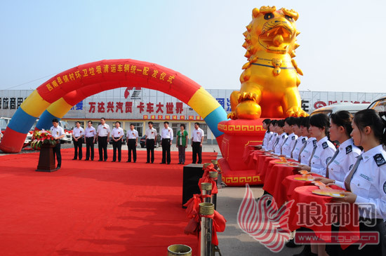 7月1日,莒南县隆重举行镇村环卫清运车辆统一配发仪式,为全县15个乡镇(街道)环卫所统一购买配发了45辆环卫清运车辆。这是莒南县实施城乡环卫一体化,建设“户集、村收、乡镇运、县处理”的环卫保洁体系方面的又一重大举措。