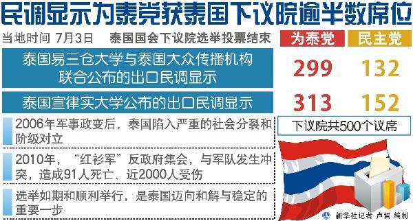 图表:民调显示为泰党获泰国下议院逾半数席位 新华社发