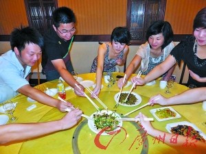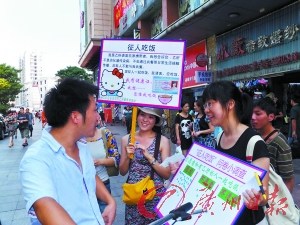 “征人吃饭了,一是找回人与人之间的关怀,二是希望借此宣传乙肝不会通过共餐等日常生活接触传播。”“锄草2号”说。经过一个小时的活动,“锄草2号”成功地征集到6位市民与其共餐。