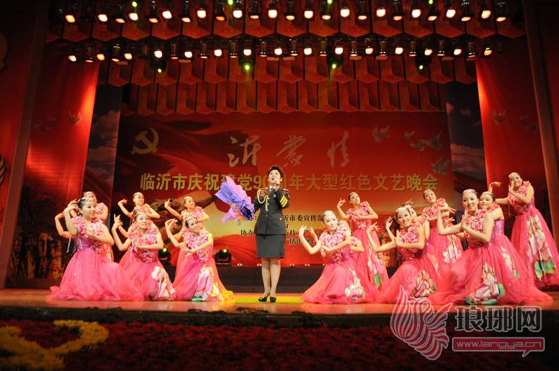 5日晚,“沂蒙情”临沂市庆祝建党九十周年大型红色文艺晚会在蒙山沂水大剧院激情上演,黄宏、杨洪基、谭晶、戴玉强等著名艺术家登台献艺,与现场千余名观众共同庆祝中国共产党九十华诞。