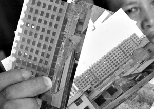 周炳文展示他一直举报的违章建筑的照片。资料图片