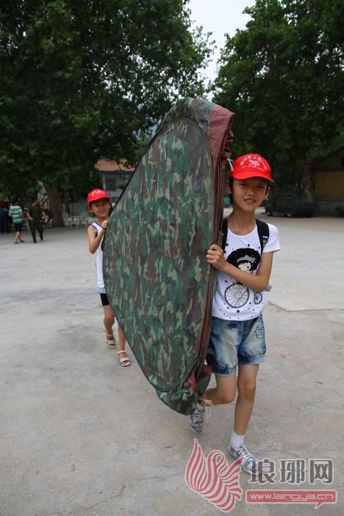 晚上住帐篷,这可让小记者们赶到特别新鲜。分发帐篷时每个人脸上都透漏着好奇和兴奋,住帐篷肯定很好玩!可是当帐篷发到手,小记者们都皱起了眉头,虽然帐篷不大,可是没人知道怎么搭起来。不要紧,教官会一步步的教大家,在教官的指导下,一个个绿色的小帐篷很快搭好,看着自己亲自动手的成果,每个人脸上都洋溢着胜利的笑容。