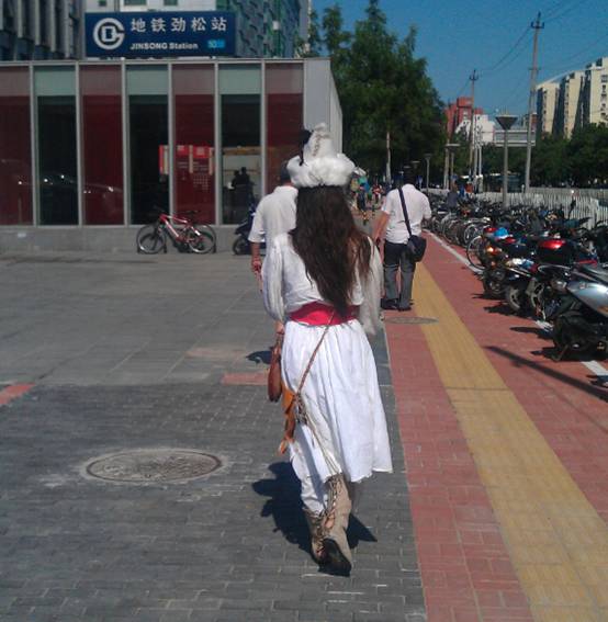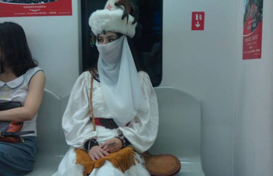临沂网讯 某北京网友在坐地铁13号线时偶然发现一位穿着奇异的女子,在炎热的天气下,毡帽、长衣、面纱,颇具异域风情的打扮吸引了众多路人围观。一位老大爷猜测是楼兰的服饰,不同于内地衣着。该网友将所偷拍的相片发到论坛,引起网友热议论。