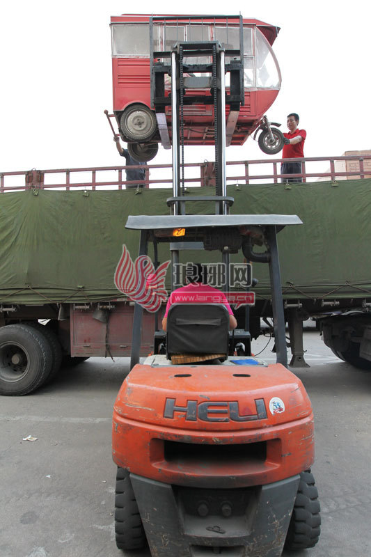 12日傍晚,马俊双的三轮车被装运上发往内蒙古老家的物流货车。