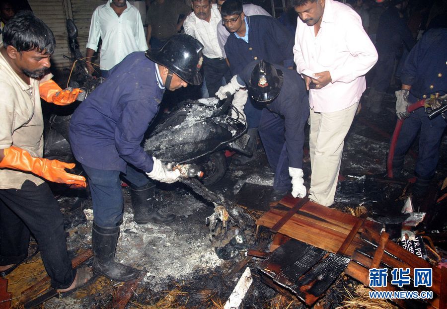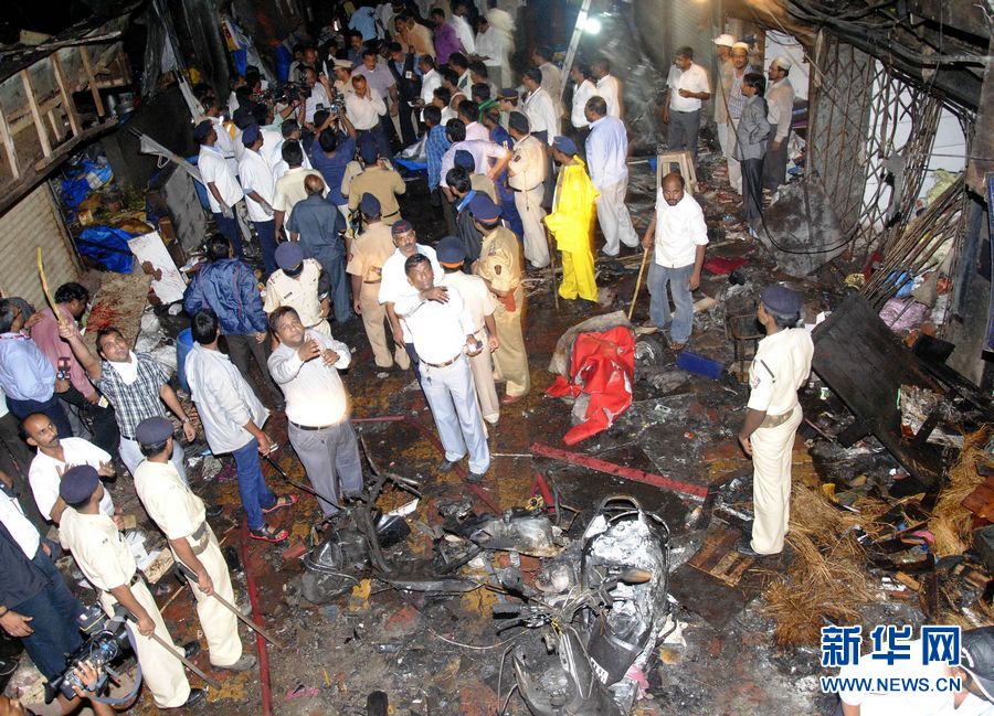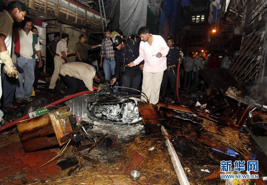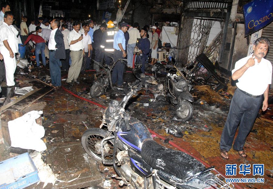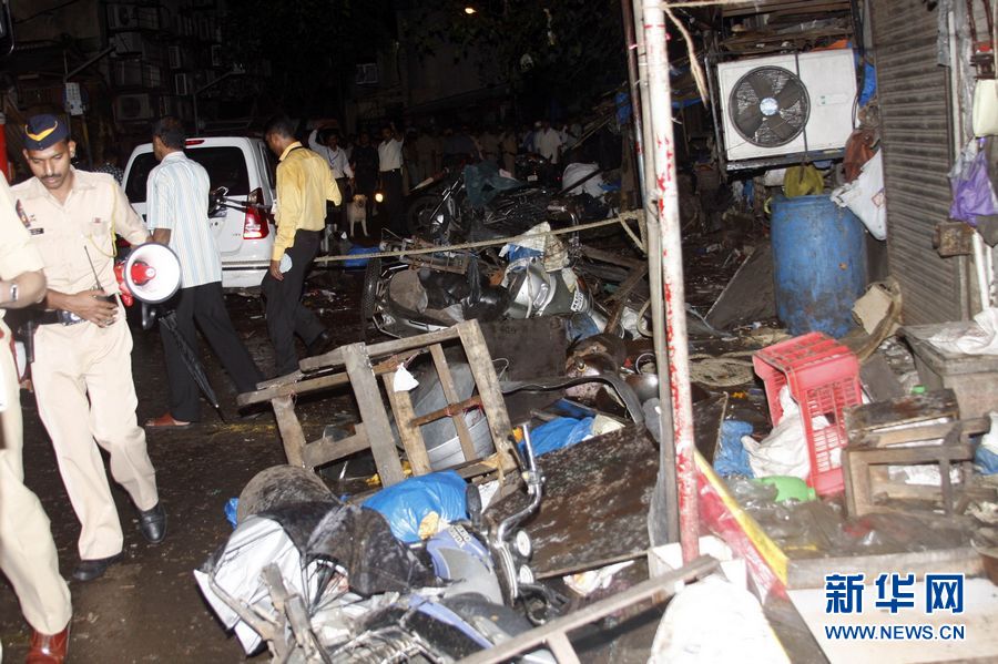 7月13日,人们在印度孟买一印度教寺庙附近的爆炸现场查看。 印度最大城市孟买当晚发生连环爆炸,至少造成20人死亡、113人受伤。新华社发