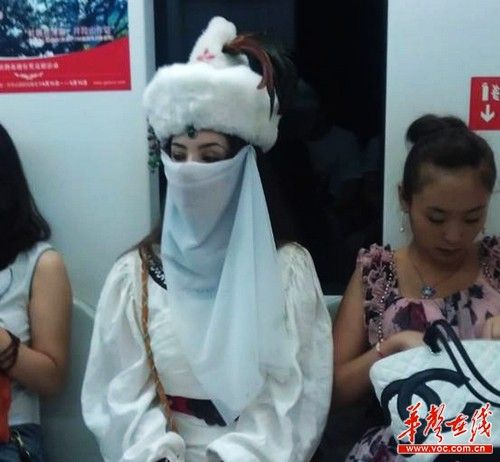 “坐地铁13号线,发现一名包裹严实的楼兰女,漂亮、高贵以及神秘感深深的吸引了我,不得不让我举起了手机。”网友“虾米与跳舞”在帖子中称这是他在7月9日用手机拍摄的一组图片。