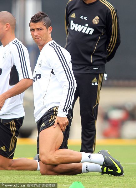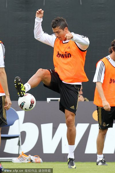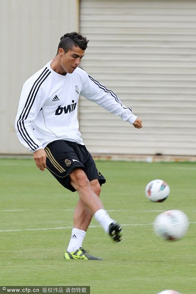 当地时间2011年7月13、14日,西甲豪门皇家马德里队继续在加州大学洛杉矶分校的训练场,备战与洛杉矶银河队的热身赛。有着“世纪最佳俱乐部”之称的皇马,自然成为美国球迷们疯狂追捧的对象。其中当家球星C罗以及主帅穆里尼奥更是球迷追逐的重中之重。