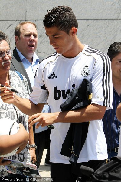 C罗耐心为球迷签名