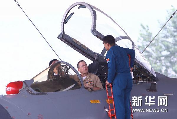 7月12日,美军参谋长联席会议主席马伦登上中国空军战斗机参观体验。当日,正在中国进行正式访问的美军参谋长联席会议主席马伦抵达山东,访问了位于济宁的一家中国人民解放军空军场站。 新华社记者 邢广利 摄