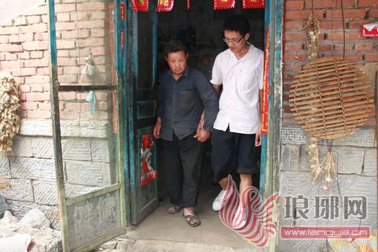 刚进家门的张健康,看到父亲准备烧水,立即上前给父亲擦汗,并把父亲扶进屋内。