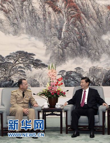 7月11日,国家副主席、中央军委副主席习近平在北京人民大会堂会见美军参联会主席马伦。 新华社记者 庞兴雷 摄