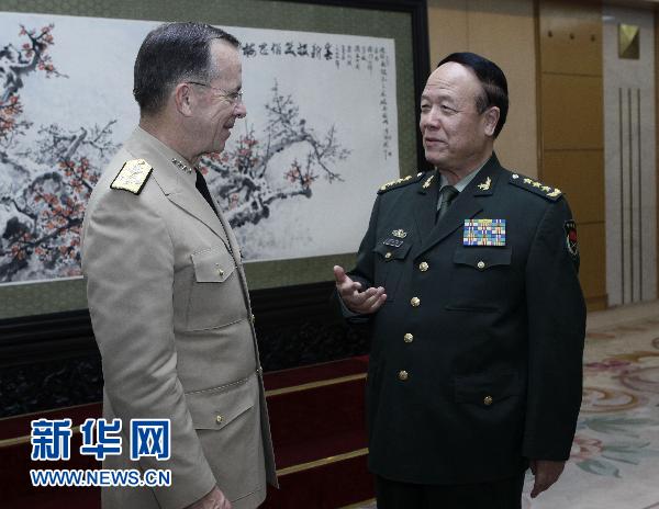 7月11日,中央军委副主席郭伯雄在北京八一大楼与来访的美军参谋长联席会议主席迈克·马伦举行会谈。 新华社记者 庞兴雷 摄