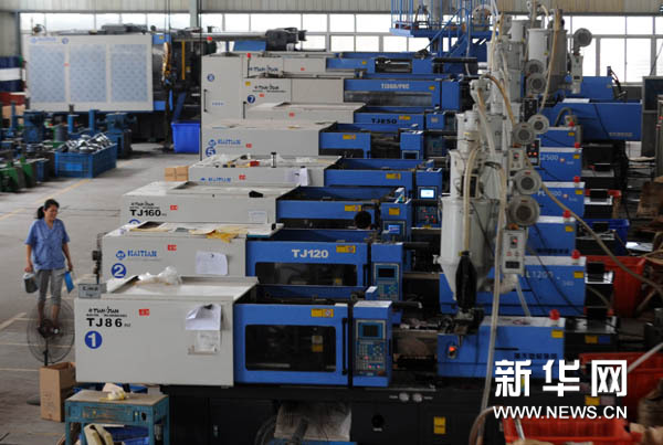 浙江温州乐清市虹桥镇一家被限电的企业,几名工人靠公司自备发电机工作(6月30日摄)。 新华社记者韩传号 摄