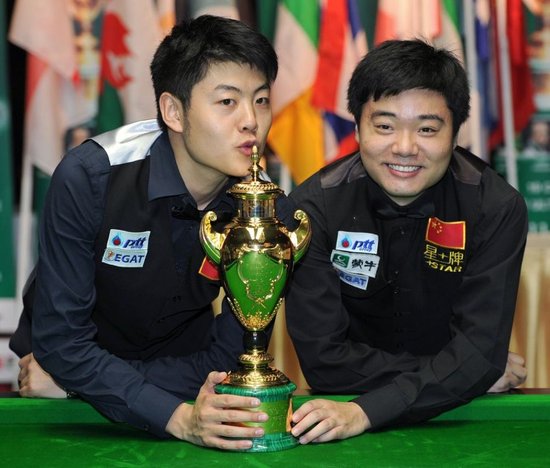 第六盘双打比赛,丁俊晖联袂梁文博再战艾伦/格林,丁俊晖/梁文博手感越来越好,很好的适应了“一人一杆”的规则,丁俊晖/梁文博轰出单杆89分,尽管其后丁俊晖表演翻袋红球不进,还是89比0拿下,中国队4比2力克对手,史上首次捧起冠军奖杯。