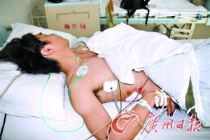 7月15日,记者在虎门太平人民医院重症监护室见到了躺在病床上的阿彬。只见阿彬脸色苍白,脸上不时露出痛苦的表情。记者在阿彬的右胸部,见到了一个长约2厘米的刀口,刀口虽然已被包扎,但仍不时有血渗出。
