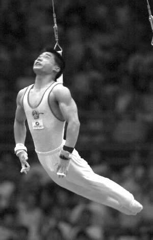 资料图片:北京大运会,张尚武获得男子吊环金牌。新华社 陈小鹰 摄