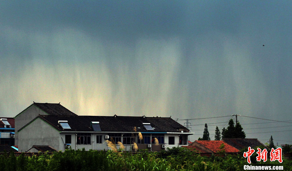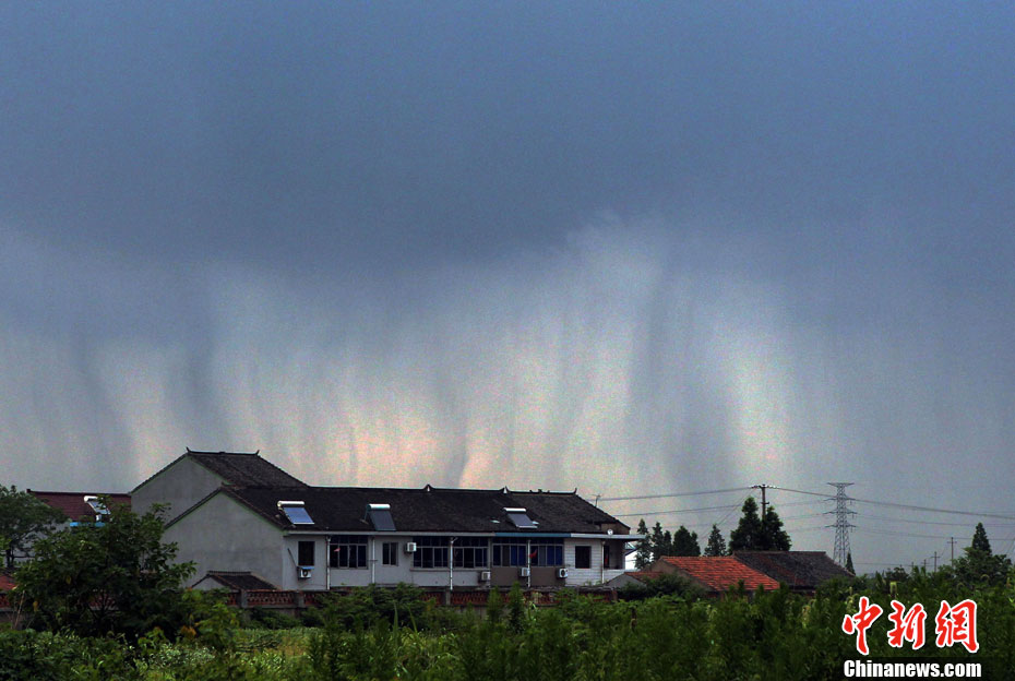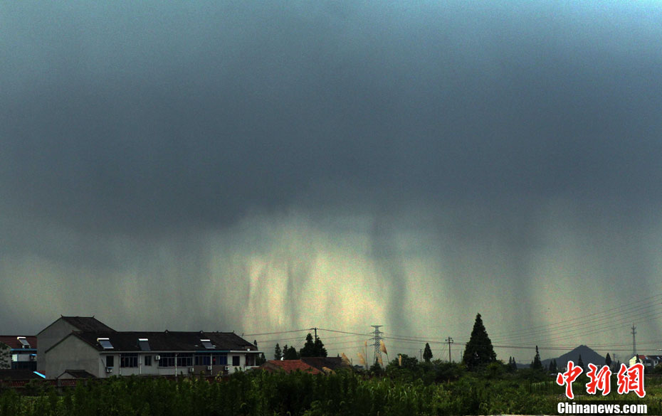 2011年7月18日,绍兴市越城区皋埠镇出现了一道壮观的“空中瀑布”。当地老人称这种现象为“雨条”,实际上这是雷阵雨,也有人把它叫做“夏雨隔田埂” 及“夏雨隔牛背”现象。