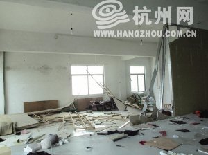 兴旗服装厂里一片狼藉,陈老板脾气暴躁,发起火来把厂里的隔板墙都敲掉了。 摄影 徐贤康