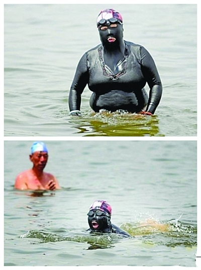 暴强泳衣大妈雷翻网友 全身包裹只露眼口
